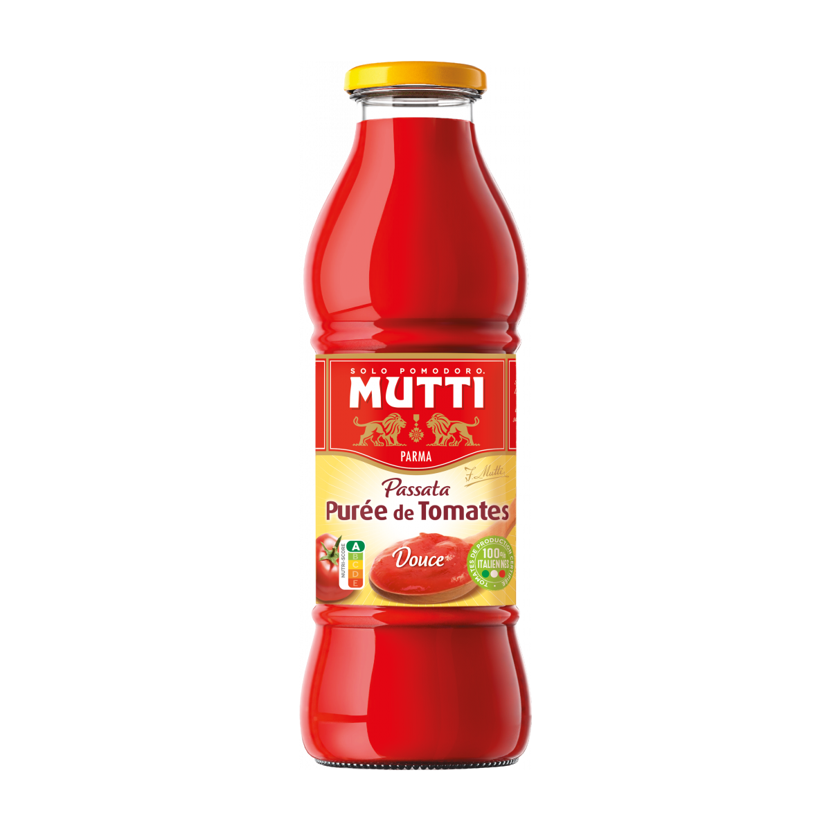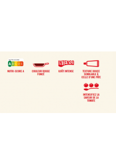 La purée de tomates nature est notée A par le Nutri-Score (comme tous nos produits excepté le Ketchup Mutti noté D pour sa teneur en sucre).